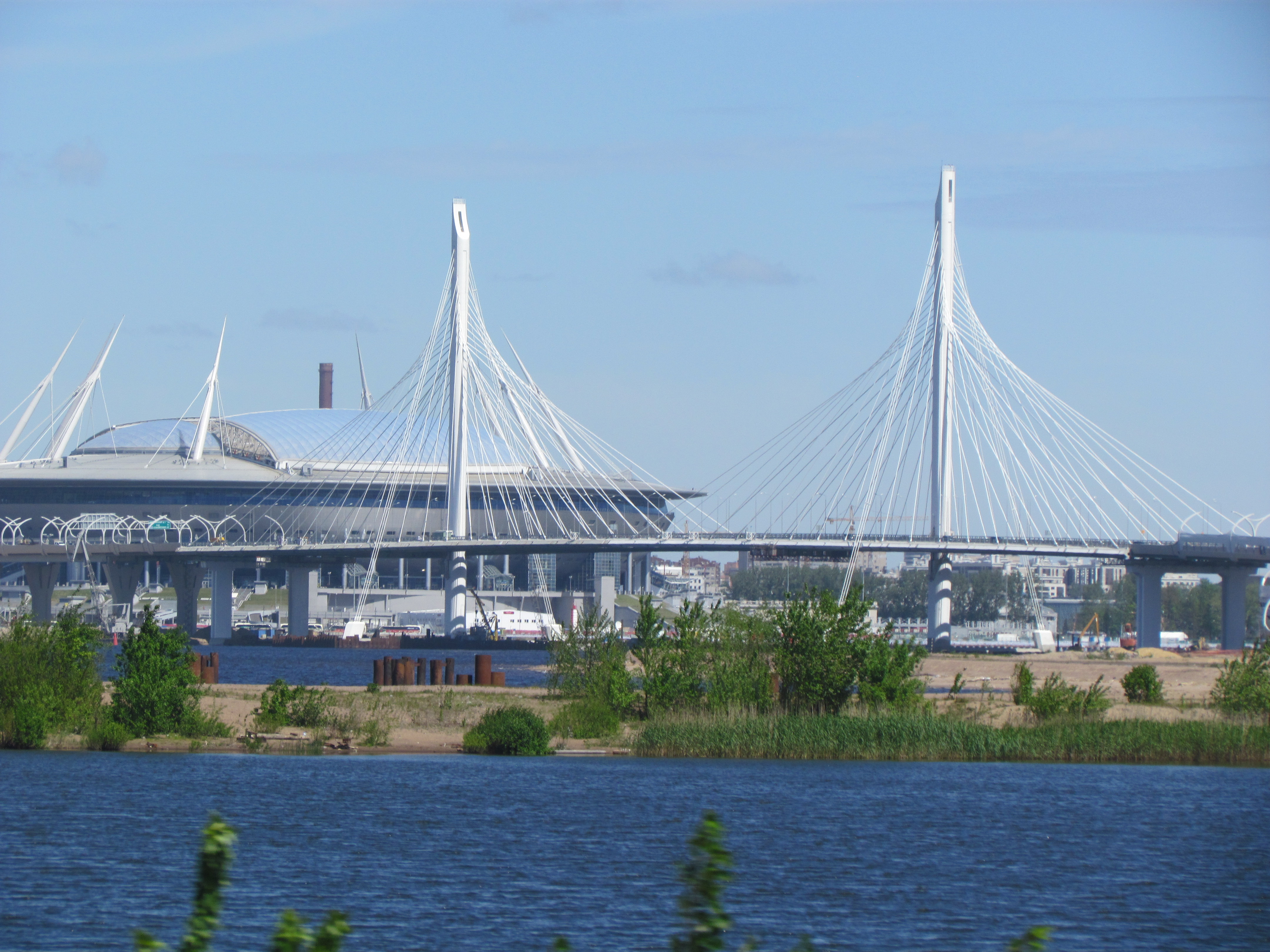 A new soccer stadium is being built near the cruise ship area for the World Cup to be held here in 2018. Next to the stadium is this beautiful bridge.