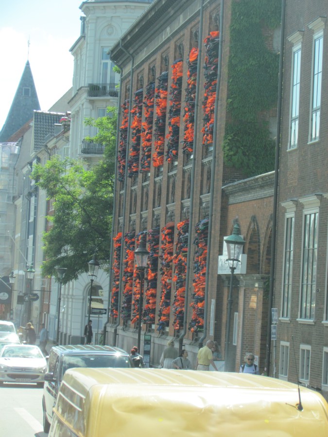 Now this is strange. I noticed this building on a side street as the bus went driving by. What is that orange stuff? I’ve enlarged it and I still have no idea.