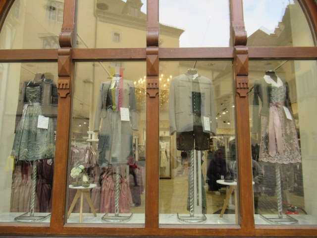 Classy store windows. Apparently for some time now the well-known German costumes have no longer popular but are now being purchased once again for special functions like the Oktoberfests.