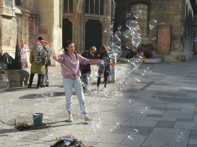And this woman in the Cathedral courtyard had a complicated bubble maker and knew how to use it!