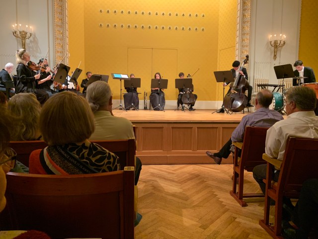 For an evening tour we had signed up to see a concert of music by Vienna favorites, Mozart and Strauss, performed by the talented performers of the Vienna Residence Orchestra . It was just for Viking passengers (I think there are now 6 Viking boats in port but of course not every passenger on every boat elected to go on this ”tour”) and we filled the hall of about 300 seats. The small orchestra had 10 performers: 4 violins, a piano, 2 clarinets, a cello, a bass, and drums plus a conductor, 2 opera singers and 2 dancers. The concert was fabulous; the musicians were all excellent, some of them were funny and had little comic routines going a couple of times, and the occasional singers and dancers added immensely to the show. The audience was very responsive and appreciative.