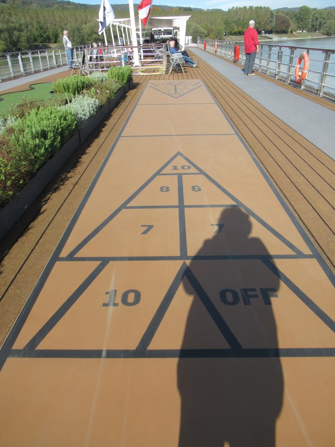 On the sun roof, there’s a shuffleboard court on one side . . .